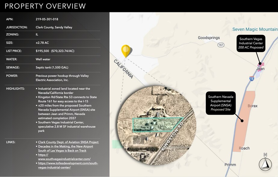 - Terrain industriel zoné situé près de la frontière entre le Nevada et la Californie