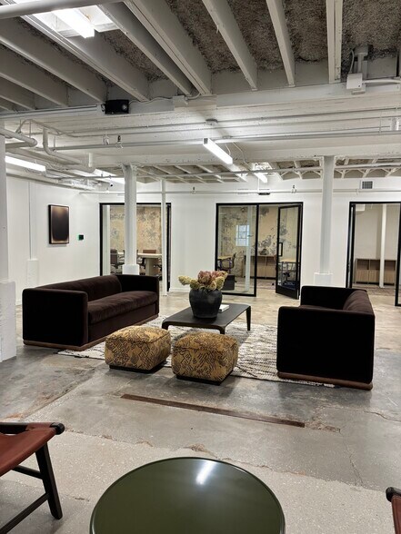 Fully furnished office suites with shared conference rooms, break room, and bathrooms.