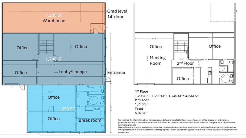 - The ±5,973 SF flex building includes ±4,773 SF of two-story office space and ±1,200 SF of warehouse with a 14’ grade-level door.