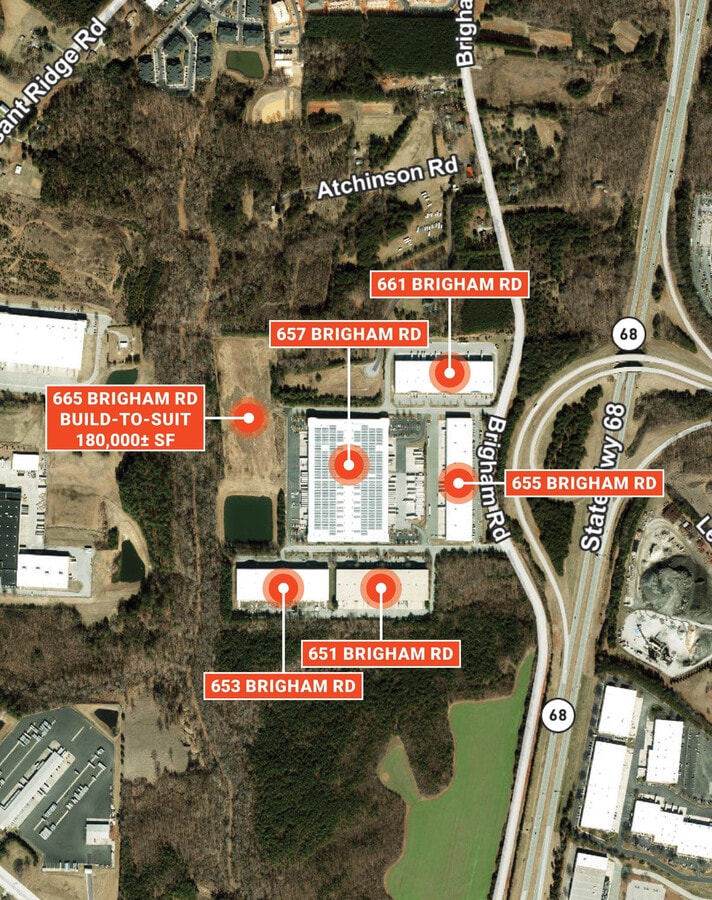 Parc d'affaires moderne et très bien situé dans le sous-marché de l'aéroport. Excellent accès à l'aéroport PTI, à l'I-40, à l'I-73 et au périphérique de Greensboro (I-840/785).