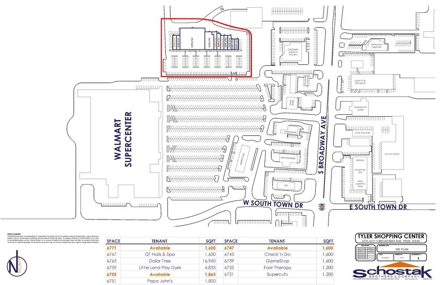 Tyler Shopping Center 6801 S Broadway Ave Espace disponible | 149–771 m² | Local commercial | Tyler, TX 75703