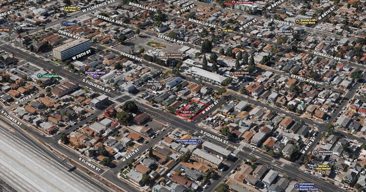 6801 S Figueroa St is an auto-use property available suitable for auto repair and service, tow and impound operations, fleet and vehicle storage, contractor yards, pallet and container storage, construction equipment storage, landscape or hardscape supply yards, film production staging, and other outdoor industrial uses. The property has direct frontage on Figueroa Street with convenient access to Downtown Los Angeles and major freeways.