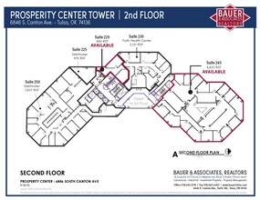 Le nouveau propriétaire du Prosperity Center s'efforce de donner aux locataires l'homonyme du bâtiment en le rénovant entièrement et en offrant une expérience de premier ordre. Les possibilités semblent illimitées dès les premiers pas du 6846 S Canton Avenue, où les travailleurs et les visiteurs sont accueillis par un vaste hall d'entrée dans l'atrium après avoir traversé la communauté professionnelle animée qui entoure le bureau. Avec des disponibilités allant de petites suites à des étages entiers, les start-up comme les entreprises de renommée nationale ont la possibilité de louer des locaux et de se développer avec le Prosperity Center. Situé à mi-chemin entre le centre-ville de Tulsa et Broken Arrow, le Prosperity Center est le juste milieu entre l'énergie des grandes villes, les affaires à indice d'octane élevé et les banlieues sereines. L'hôpital St. Francis se trouve également à moins d'un kilomètre, ce qui en fait une communauté professionnelle aux multiples facettes et offre de nombreux équipements accessibles à pied. Le Prosperity Center maximise également le confort avec les autoroutes 44 et 64 offrant un accès rapide à tous les quartiers du métro de Tulsa. Profitez de cette opportunité complète et plantez votre drapeau sur le marché de Tulsa grâce aux espaces flexibles, modernes et accessibles du Prosperity Center.