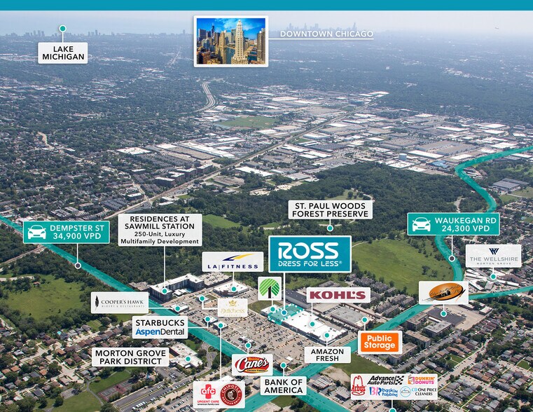 The Property is ideally positioned in the dense and affluent Chicago suburb of Morton Grove at the high-traffic intersection of Dempster Street and Waukegan Road. Morton Grove is located in Cook County, approximately 16 miles northwest of downtown Chicago. The asset’s primary trade area boasts an impressive demographic profile, with area residents earning an average household income of $147,890 within a three-mile radius. Ross Dress for Less is located within Sawmill Station, a 26-acre mixed-use redevelopment that includes shopping, dining, and residential. Tenants at the center include Amazon Fresh, Kohl’s, Dollar Tree, LA Fitness, Cooper’s Hawk, Starbucks, Aspen Dental, Chipotle, Urgent Care, Raising Cane’s, and Bank of America. The Residences at Sawmill Station includes 250 apartments.