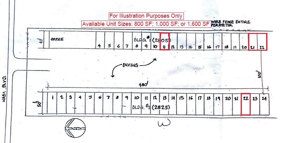 - Available Units: 800 SF ($1,100/month); 1,000 SF ($1,375/month); 1,600 SF ($2,200/month)