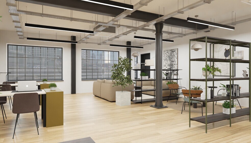 The first floor (3,035 sq ft) has been fully refurbished, featuring new engineered timber flooring, air conditioning and LED lighting. It includes demised WCs, a shower as well as a new kitchenette. It has recently been fully fitted and furnished, offering ready-to-occupy workspace showing 32 desks, a large boardroom and 7-person meeting room as well as various break out areas.