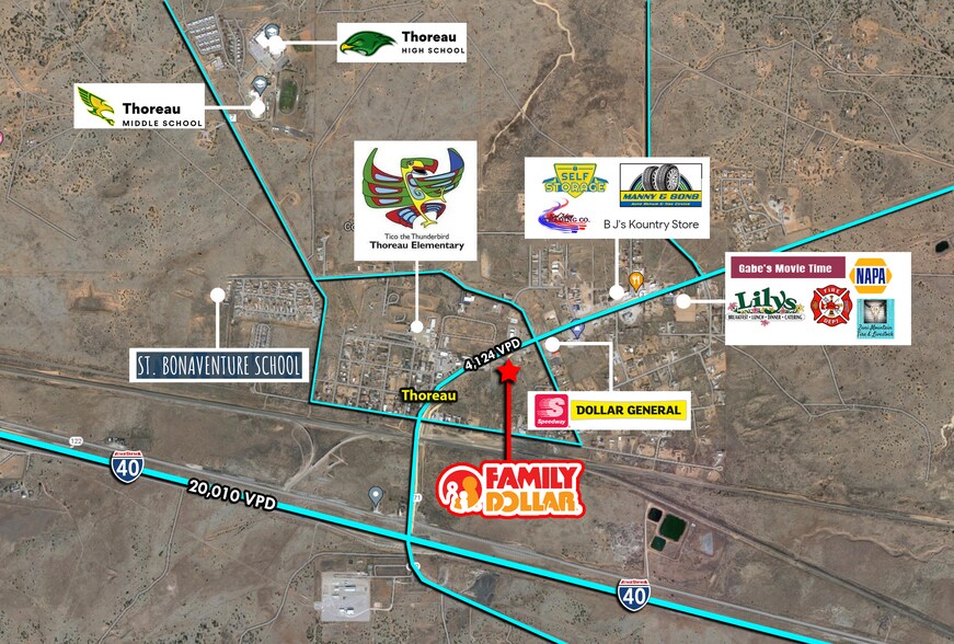 This Family Dollar is highly visible as it is strategically positioned off of I-40 which sees 20,010 cars per day, on NM-371 which sees 4,124 cars per day. It is conveniently located on the main thoroughfare surrounded by local schools, residential, & other retailers. The 10 mile population from the site is 3,945 while the 3 mile average household income is$41,524 per year, making this location ideal for a Family Dollar. The Subject offering represents an ideal opportunity for a 1031 exchange buyer or a “passive” investor to attain the fee simple ownership of a Family Dollar. This investment will offer a new owner continued success due to the ?nancial strength and the proven pro?tability of the tenant, one of the nation’s top dollar stores. List price re?ects a 9% cap rate based on NOI of $76,729. Owner is a license New Mexico Real Estate Broker.