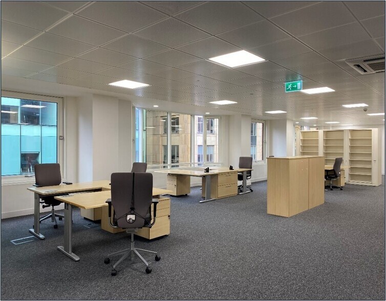 The property provides a spacious open plan fourth-floor office space.The office accommodation is accessed via a spacious ground floor reception foyer which leads to an internal staircase and passenger lift. At the fourth floor, the suite provides an attractive office space which is ready for immediate occupation. At present the office has been fit for purpose and is provided in a ‘plug and play’ condition. Desks and chairs have been installed as well as break out areas and a board room space.