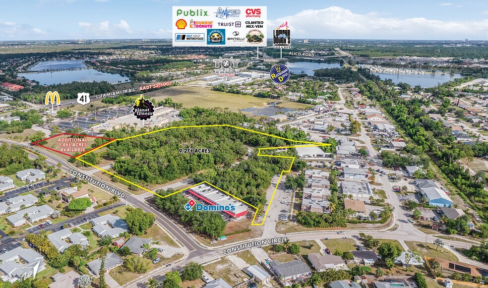 Constitution Boulevard consists of 4 vacant parcels totaling approximately 9.27± acres. Located just off US-41, the site offers close connectivity to key commercial and retail destinations, including a Publix-anchored shopping center along US-41, Alico Road—one of Fort Myers’ largest business and development corridors—Southwest Florida International Airport, and Florida Gulf Coast University.