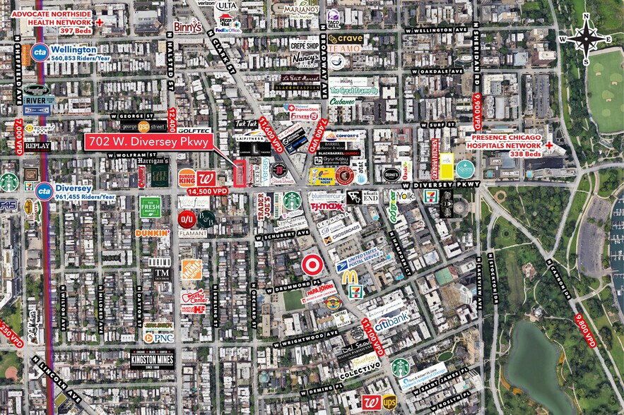 - High daily vehicle and foot traffic along Diversey Parkway and Clark Street