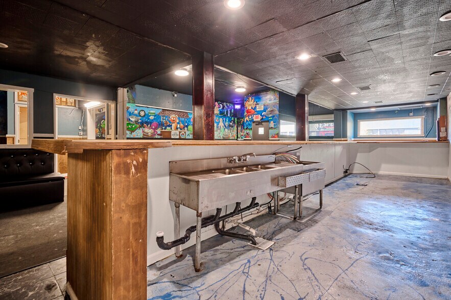 - Ground floor former bar/restaurant with existing bar buildout, kitchen infrastructure, and fenced outdoor patio area