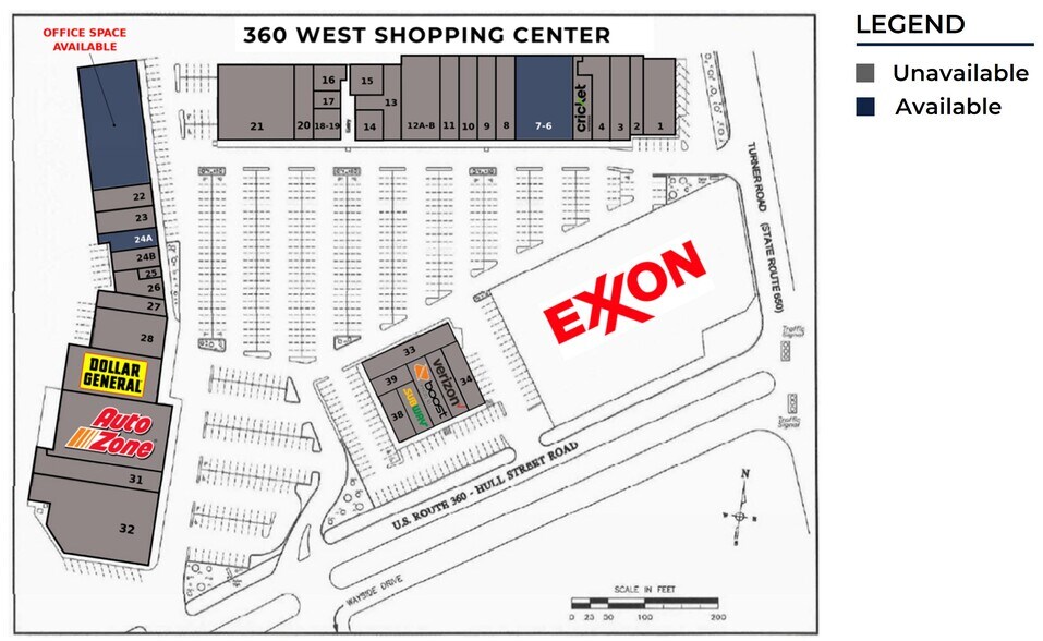 360 West Shopping Center 7100-7228 Hull Street Rd Espace disponible | 37–1 103 m² | Richmond, VA 23235