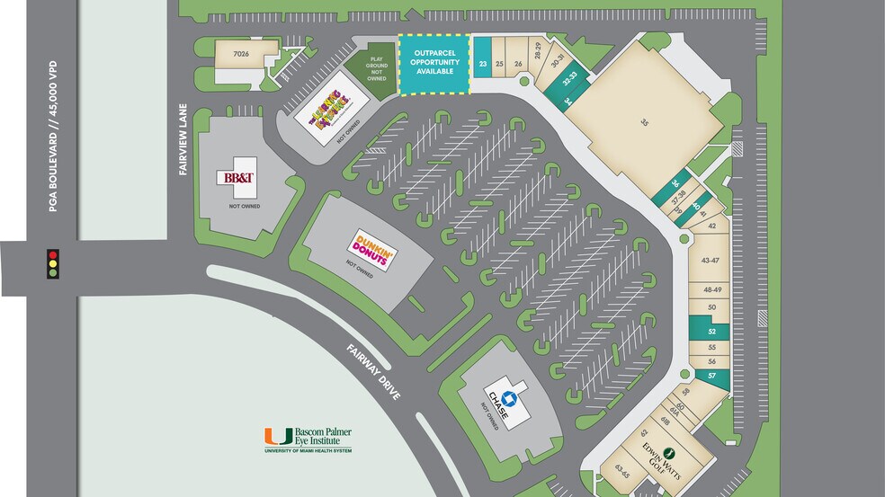 Magasins nationaux PGA - Rénovation complète prévue sur l'ensemble de la place - Situé dans le quartier huppé de Palm Beach Gardens - Revenu moyen des ménages de 138 000$ et plus dans un rayon de 1 mile - Opportunité spatiale d'ancrage (20 000 à 40 000 pieds carrés) - Divisible - 408 000 personnes dans un rayon de 10 minutes en voiture - 80 000 employés de jour dans un rayon de 8 miles, à proximité des immeubles de bureaux et de l'UHealth/Bascom Palmer Eye Institute - Bail foncier de plus de 0,25 acres avec possibilité de vente au volant - Dix country clubs de golf dans un rayon de 3 miles