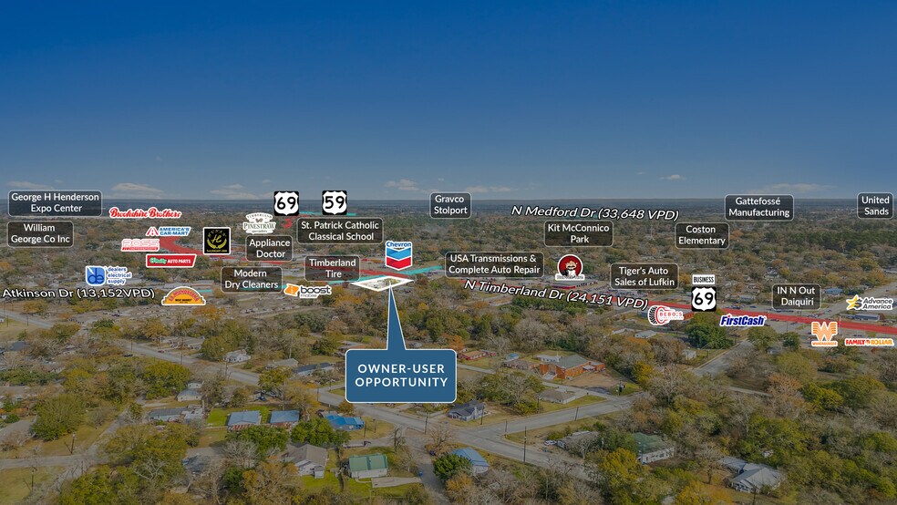 Sands Investment Group is pleased to exclusively offer for sale the 5,750 SF ABC Auto Service facility located at 712 N Timberland Drive in Lufkin, Texas. This freestanding property features five service bays and one storage bay, making it ideal for automotive repair, tire services, or quick-service operations. Its corner location and versatile zoning provide excellent potential for owner-operators or future redevelopment. This property represents a unique investment opportunity in a high-visibility, well-trafficked area.