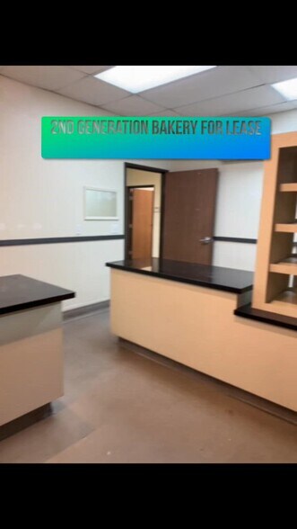 Second-generation bakery available for a new operator looking to expand. The bakery space consists of 2,821 square feet and includes a walk-in cooler and a hood vent. This location would be ideal for a catering business seeking storage, as well as the advantage of retail sales. Call to schedule an appointment.