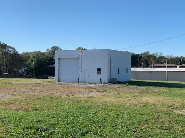 The primary building features 3,400 SF with 22’ clear ceiling height, three overhead garage doors, and a heated and cooled office with bathroom, making it ideal for light manufacturing, service, or warehouse use. A second parcel includes a 1,200 SF block building, providing additional functional space or future expansion options.