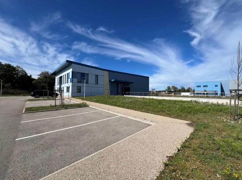 Situé au coeur de la zone industrielle de Saint-Vulbas, ce bâtiment indépendant de 905 m², construit en 2022, est implanté sur un terrain clos de 5 000 m². Il offre une configuration complète avec bureaux, atelier, mezzanine de stockage et terrasse.