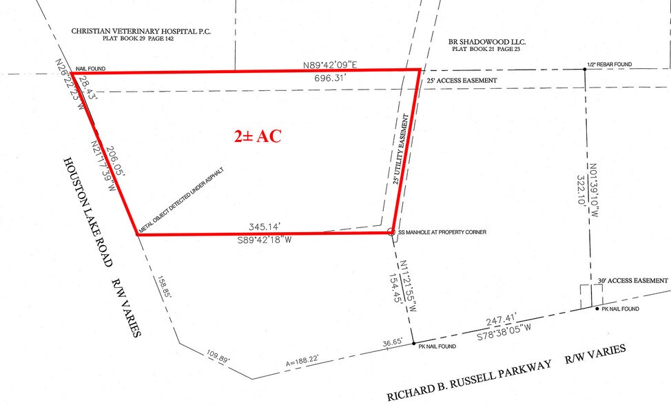 Great commercial opportunity. This ±2 Acre site has ±235' frontage on Houston Lake Road, and is zoned C-2, with all utilities available. Access on Houston Lake Road and Russell Parkway (See Easement Plat).