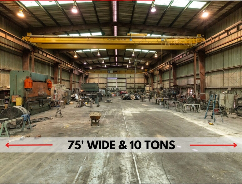 19,050 SF on 2 Acres (2) 10 Ton Cranes with Single Hoists, 21' Hook Height, (5) Grade Level Doors (2) 18'x18' Sliding Doors and (3) 16'x16' Roll Up Doors, 480V 800 Amps