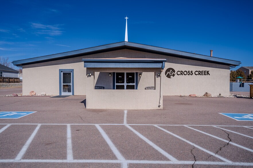 Cross Creek Church located on C & S Road in Fountain, offering a combination of functional improvements and future redevelopment potential. The property is Zoned PUD (Planned Unit Development), providing flexibility for a variety of potential uses subject to municipal approval. The existing building was designed for religious assembly and includes a large sanctuary, multiple ancillary rooms suitable for classrooms, offices, meetings, or community use, and ample on site parking to support gatherings and events. The layout allows for continued use as a place of worship or adaptive reuse with minimal configuration. The PUD zoning may allow for alternative or mixed use redevelopment opportunities, including but not limited to community facility, educational, nonprofit, event space, or other compatible uses (buyer to verify permitted uses and development standards with the City of Fountain. The property is situated in a high traffic area with convenient access to Fountain, Fort Carson, and the greater Colorado Springs metro area. This offering presents an opportunity for an owner user or investor seeking a flexible use property in a growing southern El Paso County market.