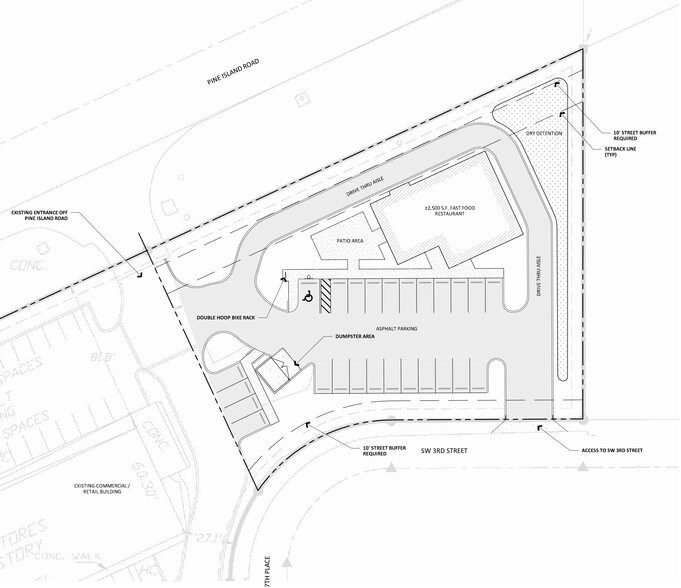 Le propriétaire est prêt à construire jusqu'à 2 500 pieds carrés pour un locataire de marque nationale (QSR ou autre utilisateur) ou une institution financière. L'établissement dispose d'un accès droite/droit depuis le chemin à quatre voies Pine Island (SR 78), une importante artère de circulation est-ouest située dans un corridor commercial à fort trafic. L'établissement dispose d'une façade de 250 pieds sur Pine Island Rd, d'une signalisation à pylône dédiée et d'un accès supplémentaire depuis le sud-ouest de la 4e rue.