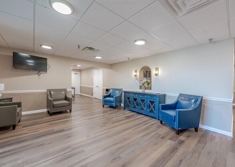 The building underwent major renovations in 2019 and 2023, including the addition of a wedding suite featuring double dressing rooms and a spacious gathering area. The facility also includes a fully equipped commercial kitchen with a commercial refrigerator, stove, additional preparation space, and a 40-foot serving counter.