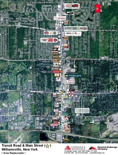 Highly visible 7,000sf single-story restaurant/retail building with two (2)curb cuts on heavily traveled Transit Road. Fully sprinklered, 1200-amp power. Can be converted for other purposes such as medical/professional or other retail uses. Directly across from the Eastern Hills Mall Town Center redevelopment. Easily accessible from All of Western New York. Excellent demographics and traffic counts. Situated in a primary retail trade area home to many retail/big box stores, restaurants, office parks, hotels and service businesses.