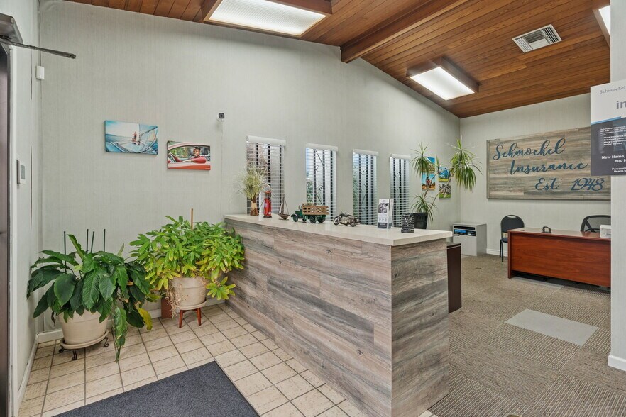 a four-plex residential complex tucked behind the office, and two detached garages producing additional income as leased