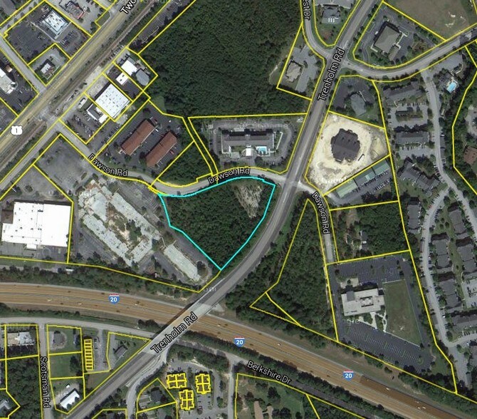 Le site se trouve à 200 mètres de la sortie 74 de l'Interstate 20 et de Two Notch Rd et à 350 mètres de la sortie 17 de l'Interstate 77 et de Two Notch Rd. Dans le quartier se trouve le bâtiment médical 9ksf de Columbia Nephrology (columbianephrology.com) situé de l'autre côté de la rue, à l'angle des sorties Trenholm Rd et Dawson (221 Dawson St), qui ouvrira ses portes fin 2019. Orthodontiste 7621 Trenholm Rd, Carolina Retina Center 7620 Trenholm Rd, Shives 7600 Trenholm Rd, Dentist 7701 et 7711 Trenholm Rd, Boyd Management 7700 Trenholm Rd, Lizard Thicket 7411 Nates St et Veterinary Emergency Clinic 1321 Oakcrest Dr. Le site est constitué de 3 843 acres de terres commerciales non améliorées. Il comprend 3,11 acres à l'angle sud-ouest du prolongement de Trenholm Road et de Nates Road et 0,733 acre situé du côté nord de Nates Road. La propriété est zonée General Commercial par le comté de Richland. Tous les services publics sont disponibles. Il y a 489 pieds de façade sur Trenholm Rd Extension et 597 et 297 pieds de façade sur Nates Road. Le prix de vente est de 400 000$. Dépliant ci-joint. Plat disponible sur demande. Si vous avez besoin d'informations supplémentaires ou de précisions, veuillez me contacter.