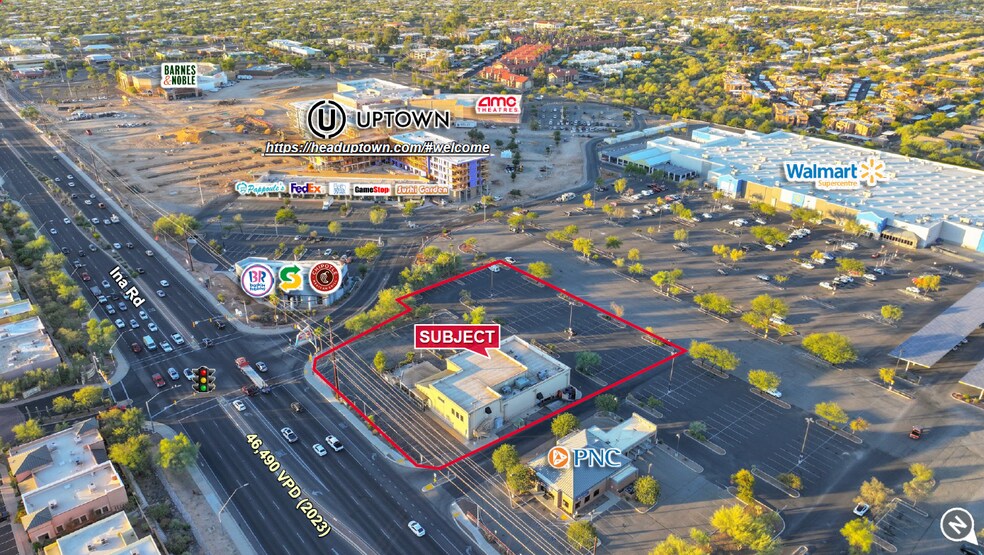 Built in 2002 and remodeled a couple times since, this 9,638 SF building has another 2,000 SF mezzanine on .87 acres (37,754 SF). Ideal as a massive Sports Bar and Restaurant, this lease opportunity comes completely furnished with FF&E, including numerous big screen televisions, billiards tables, and air hockey. The layout includes booth tables, high tops, restaurant seating, and even a large mezzanine perfect for events or banquets. It also is located at a lighted intersection with frontage adjacent to a 2.5 million SF renovation project of retail and mixed use - Uptown Mall - Tucson's first high-density urban village. This is a MUST SEE property!