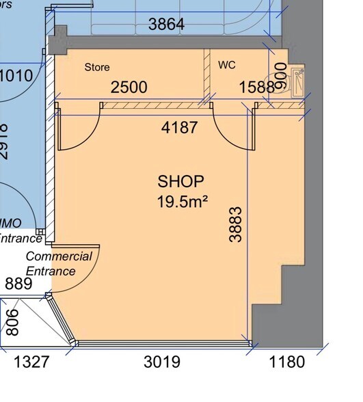 | Espace total disponible | 20 m² | Surface commerciale utile | 20 m² |