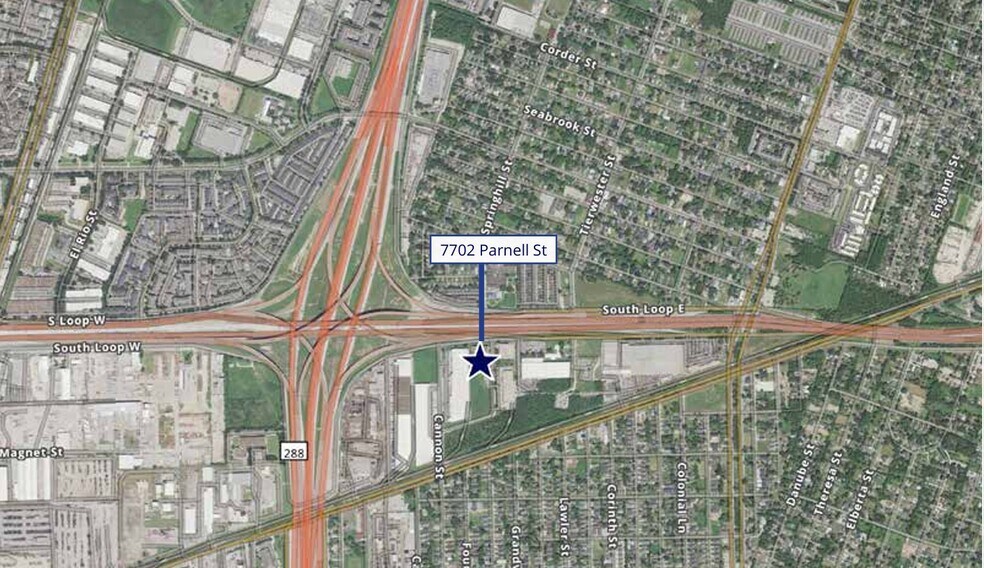 Previously the Houston Methodist Distribution Center, this great looking, clean, 100% A/C, fully sprinkled, tilt wall industrial facility is located near the Medical Center of Houston, on S. Loop 610 at SE corner with Hwy 288. Easy, short drive to the Port of Houston and Hobby Airport as well as Downtown Houston. Perfect location for all kind of distribution business. 7702 Parnell St. sits on ±2.57 acres, offering a total of ±47,375 SF of space, including ±6,700 SF of office and ±40,675 SF of industrial space. Built in 1974, it features 5 dock-high loading doors, a 20-foot clear height, and a fenced, gated lot for added security. With a parking ratio of .53 per 1,000 SF and additional street parking available, the property can easily accommodate employees and visitors. Its prime location provides direct access to the 610 South Loop, making it an excellent
