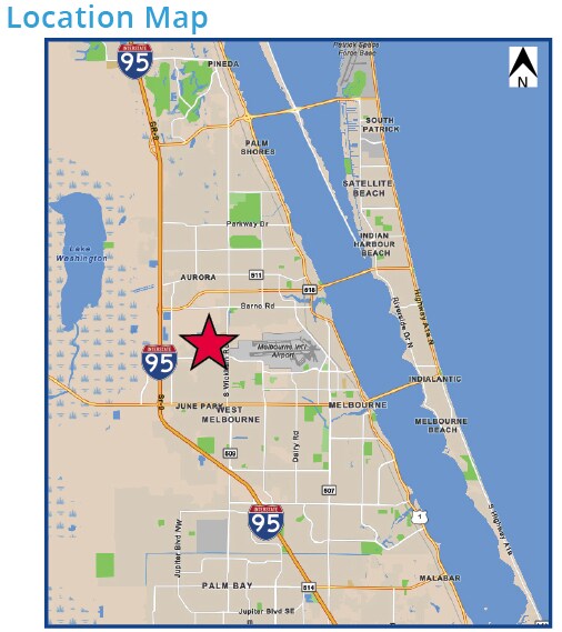 - Highly desired and convenient location, approx 1 mile to Melbourne- Orlando International Airport; I-95, St Johns Heritage Parkway and Wickham Rd.