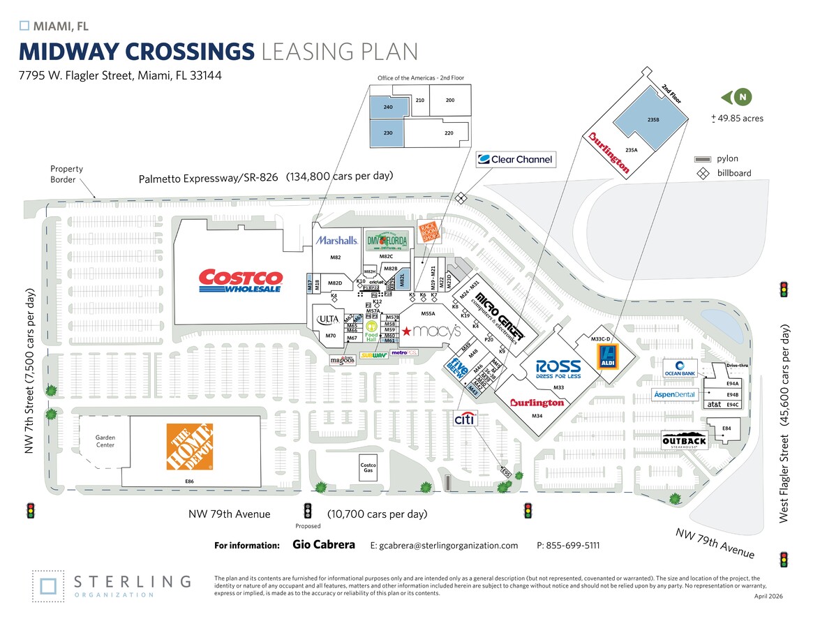 - Le centre bénéficie d'une excellente visibilité depuis l'autoroute Palmetto, un important corridor nord-sud du sud de la Floride