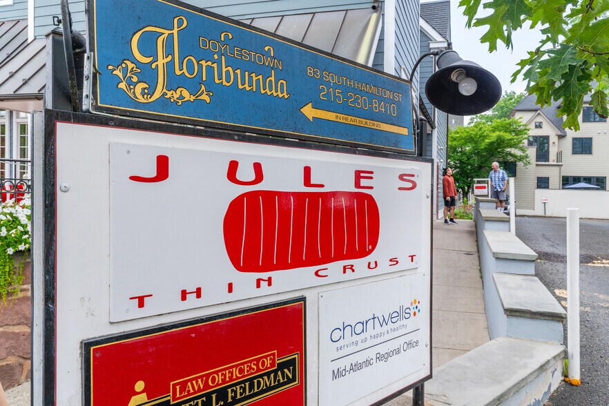This second-floor office suite offers approximately 600 sq ft of well-maintained, move-in-ready workspace in the heart of historic Doylestown. The suite includes three distinct rooms: a private executive office with natural light, a welcoming reception/administrative area with built-in workspace and storage, and a dedicated conference room that comfortably accommodates team meetings or client presentations. Features include: Private Office: Bright and spacious with two windows and traditional wood trim. Reception / Administrative Area: Functional layout with desk space, storage, and room for organization. Conference Room: Large table and seating for team collaboration or client meetings. Private Restroom: Located conveniently on the same floor. Second Floor Walk-Up: Quiet and professional environment. 1 Reserved Parking Spot Charming Downtown Setting: Steps away from shops, restaurants, and courthouse; ideal for professional services, legal, consulting, or administrative operations. Jules Pizza is the downstairs tenant and is a community staple! This space offers a professional atmosphere with classic finishes and ample natural light—perfect for businesses seeking a central and respected Doylestown address.