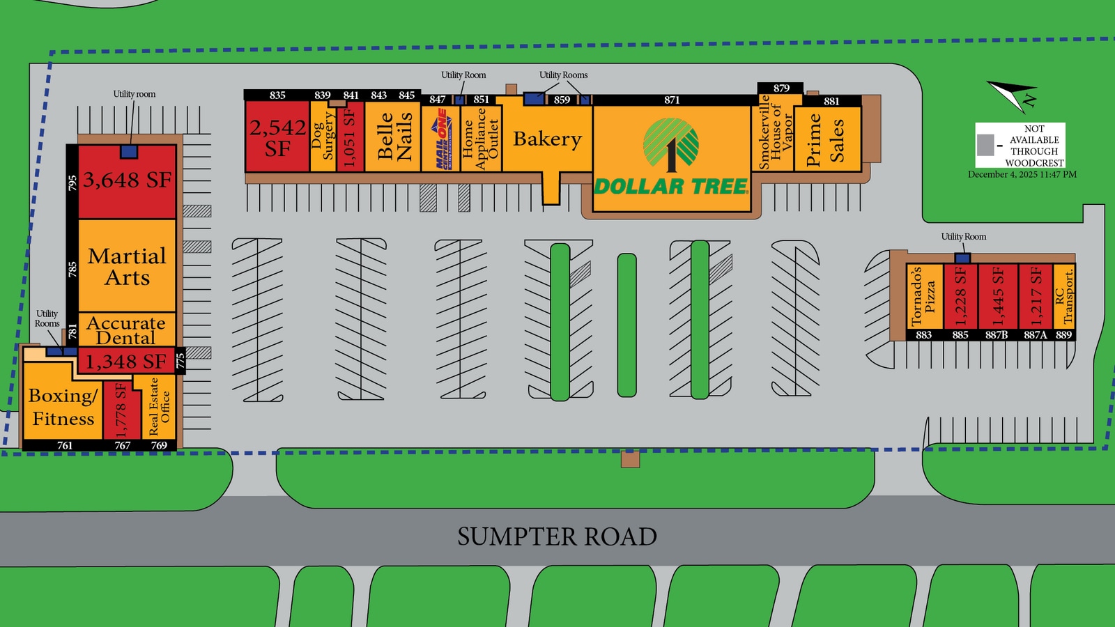 | Max. Contigu | 361 m² | Façade | 264,87 m le Sumpter Rd |