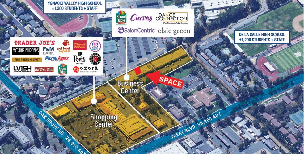 Oak Grove Plaza 785 Oak Grove Rd Espace disponible | 195–390 m² | Bureaux/Local commercial | Concord, CA 94518