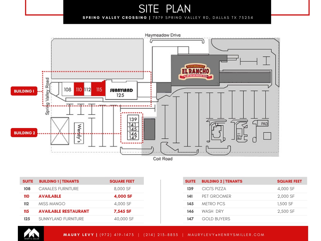 | Surface commerciale utile | 4 506 m² | Rues transversales | Coit Rd |