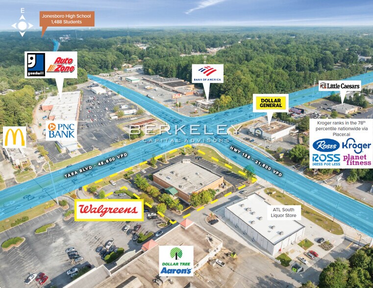 - Signalized corner intersection | Tara Blvd & Hwy 138 | 70,000 VPD combined | Great visibility & access