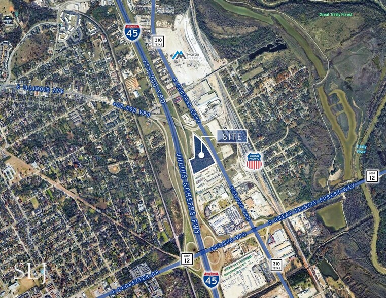 EXCELLENT EMPLACEMENT : La propriété est située le long de S Central Expy (SH 310), entre S Illinois Ave et Loop 12. La limite ouest du bien étant la route de service I-45, le bien est bien placé pour affronter les embouteillages. L'établissement permet d'accéder facilement à l'Interstate 20, à l'Interstate 35E et à l'US Highway 175, ainsi qu'à de nombreuses autres artères de la région. La propriété est également adjacente au tracé proposé du chemin de fer à grande vitesse du Texas Central, qui permettra d'effectuer le trajet de 240 miles entre Dallas et Houston en 90 minutes. SITE DE DÉVELOPPEMENT DE PREMIER ORDRE : La propriété offre de nombreux avantages en tant que site de développement industriel, notamment une grande superficie de ±13 acres, un zonage libéral, un excellent accès, une façade autoroutière et la proximité des conducteurs de la région. Le district de zonage libéral pour la recherche industrielle permet diverses utilisations, notamment l'industrie, la distribution en gros et le stockage, ainsi que la recherche et le développement. BASSIN DE MAIN-D'ŒUVRE ABONDANT : La population dans un rayon de 16 km autour de la propriété est de plus de 990 000 habitants et devrait augmenter de près de 3 % d'ici 2025. FRÉQUENTATION ÉLEVÉE : La façade de l'établissement, située sur l'autoroute S Central Expy et la voie de service I-45, offre une excellente exposition à la circulation automobile, plus de 104 000 véhicules passant par la propriété par jour.