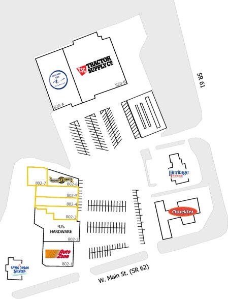 Situé à l'angle sud-est de la SR 61 et de la SR 62 (rue principale), la principale artère est/ouest de Boonville, le centre commercial de Boonville est ancré par Tractor Supply Co., AutoZone et 4J's Hardware. -Excellente visibilité avec plus de 22 000 VPD ! -Allocation d'amélioration locative disponible pour les locataires qualifiés -Emplacement en angle avec plusieurs points d'accès et un vaste espace de stationnement -Les locataires incluent : AutoZone, Tractor Supply Co., 4J's Hardware, Simply Home Store et Smoker's Host