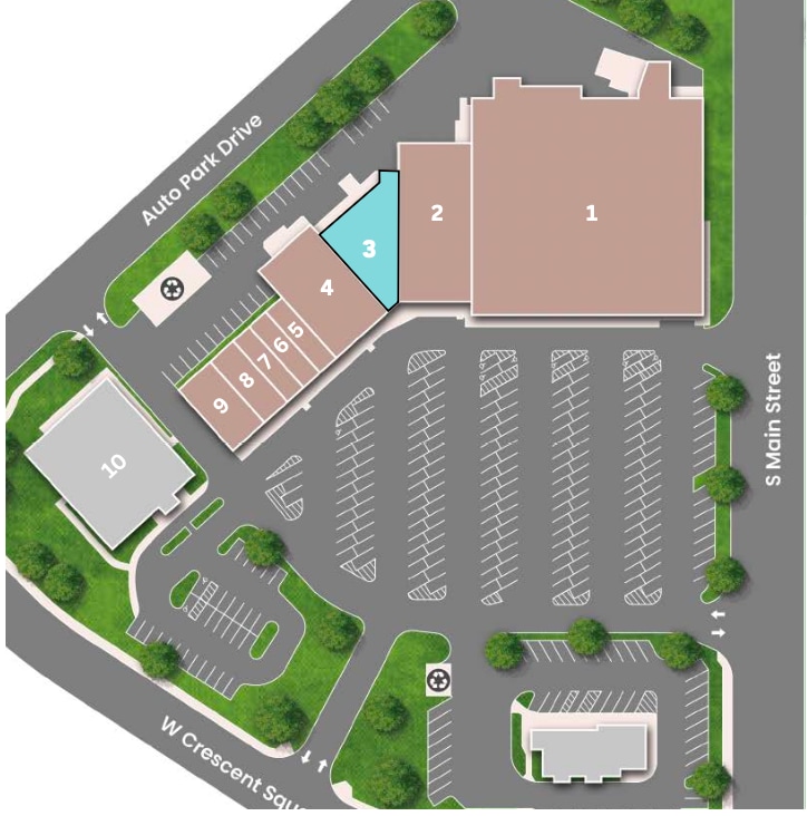 Crescent Center is a 64,978 SF Retail Center Availability: •Suite 3: $20.00/SF, NNN Anchored by national and regional retailers like Carly C’s, Pizza Hut and Subway Strategically positioned in a high-traffic retail corridor with signage opportunities Excellent visibility from main thoroughfares with easy ingress and egress Strong surrounding residential growth and established community customer base Located at the signalized intersection of S. Main Street (29,500 AADT) and Crescent Square Dr Ample surface parking