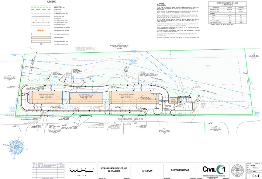 81 Pocono Road presents a fully-approved self storage development opportunity in the highly affluent community of Brookfield, CT. Plans allow for 43,000 GSF and 36,325 NRSF across 4.91 acres, featuring a well-balanced unit mix of 72 non-climate units and 268 climate-controlled units. The design incorporates two stories of storage without the need for an elevator, as the site’s natural grade provides ground-level access to both the upper and lower levels.
