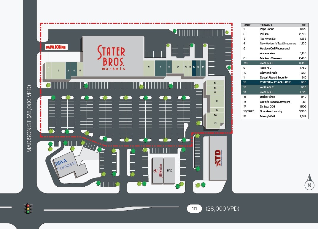 Stater Bros anchored neighborhood center at Madison Street and Hwy 111 in Indio, CA.