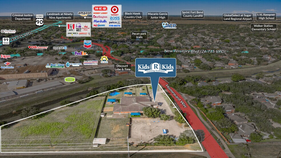 Sands Investment Group is pleased to exclusively present for sale the 13,858 SF Kids ‘R’ Kids facility located at 8202 Homeward Way in Sugar Land, Texas. This offering features a long-term 15-year Absolute Triple Net (NNN) lease with 2% annual rent escalations and four, five-year renewal options, providing a stable and unique investment opportunity.