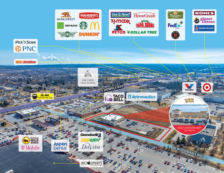 Located within the Milwaukee MSA (population exceeding 1.57 million), the subject property is strategically positioned near the intersection of S Howell Ave (30,400 VPD) and Forest Hill Ave and is only 12 miles from downtown Milwaukee. The 1.8-acre parcel comprises a 10,000 SF building, 5,000 SF outdoor play area, and 46 parking spaces. The subject property is within a quarter mile of Drexel Town Square, which comprises a vibrant mix of luxury apartments, diverse dining opportunities, and numerous retailers. The newly developed town square blends traditional main-street charm with contemporary urban amenities, including the new city hall and library complex. Nearby retailers include Target, Meijer, Pick n’ Save, ALDI, Kohl’s, T.J. Maxx, Planet Fitness, Chase Bank, McDonald’s, Chick-fil-A, Panera Bread, Starbucks, and more.