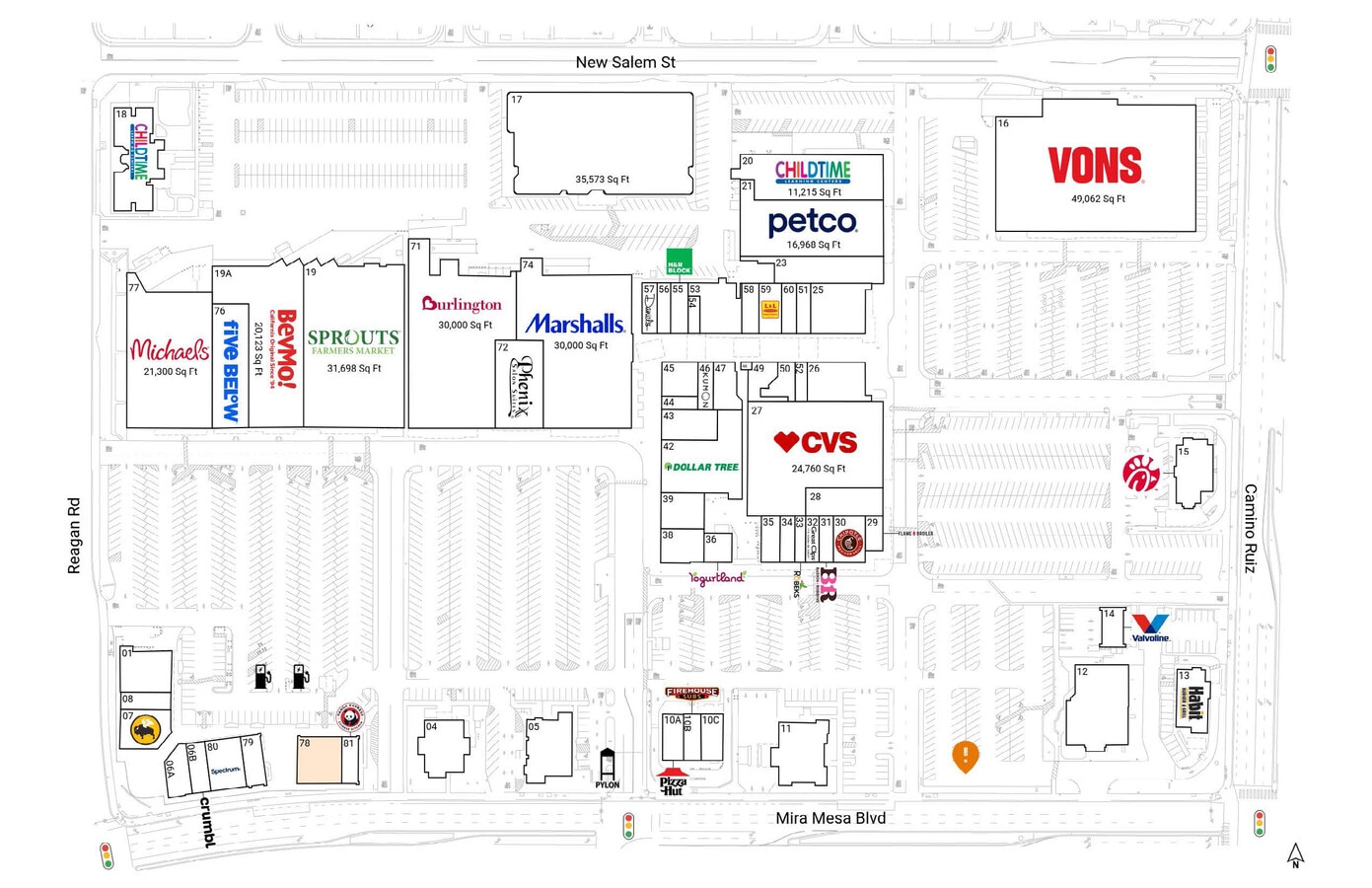 | Surface commerciale utile | 7 137 m² | Rues transversales | NWC Mira Mesa Blvd & Camino Ruiz |