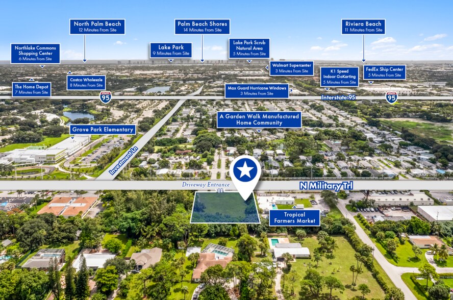 The site is strategically positioned along N. Military Trail, offering excellent visibility and accessibility. With convenient access to major transportation