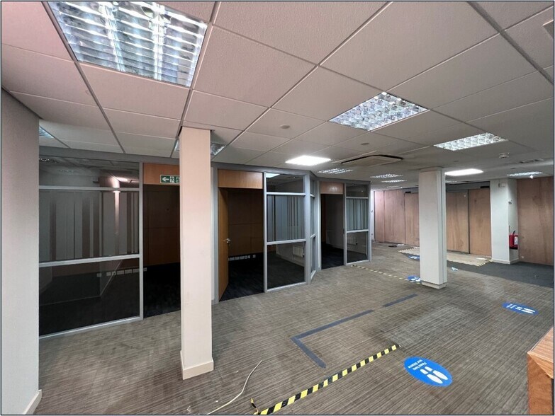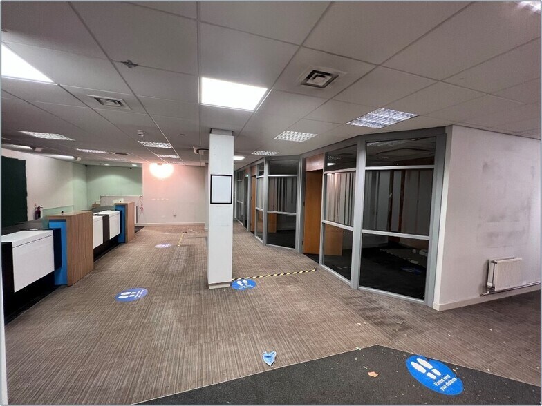 Internally, the subjects allow for an open plan sales area to the front with a number of partitioned offices populating the perimeter. The first floor provides W/C and staff break out areas. A fire exit door to the rear leads to a communal car park suitable for loading. The subjects may lend themselves well to subdivision, with further details on this available upon request