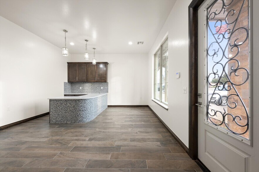 Executive Office Space for Lease | Prime Edmond Location Position your business in a polished, executive office space located at the highly visible intersection of Kelly Avenue and Sorghum Mill Road in Edmond, OK. This professionally designed space offers strong curb appeal with elegant brick and stone architecture, a covered entry, and convenient on-site parking directly in front—ideal for clients and staff alike. The interior features a bright, open layout with abundant natural light, recessed lighting, and durable wood-look tile flooring that delivers a modern yet refined aesthetic. This office space offers excellent accessibility to surrounding neighborhoods, retail, and major thoroughfares, making it an exceptional opportunity for businesses seeking a prestigious and convenient address. Please contact Christina for leasing information 405-863-7575